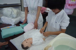 5月26日(土曜)に、島根県看護協会助産師職能委員会の主催で、「国際助産師の日」のイベントが雲南市立病院で行われました。国際助産師の日とは、全世界で助産師業務の重要性を多くの人に認識してもらう日です。今回のイベントでは、さまざまな体験コーナーがあり、看護師や助産師などの医療職に興味をもつ近隣の中学生や高校生、出産を控えるお母さん・お父さんが参加していました。