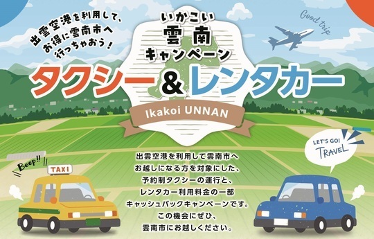 <好評につき期間延長!>出雲空港を利用される方必見! 「いかこい雲南キャンペーン タクシー&レンタカー」タクシー&レンタカーキャンペーンについてのページです。