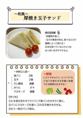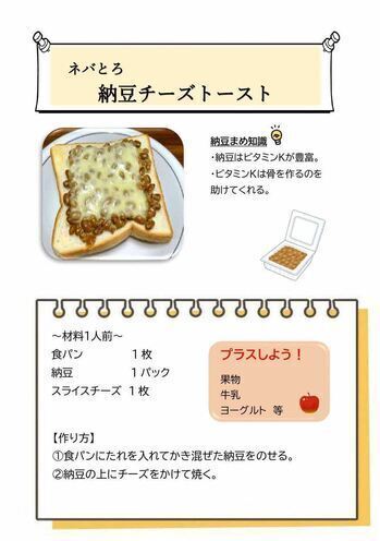 朝ごはんを食べよう!朝食は1日の始まりです。起床時は栄養素が不足しているため、朝食を食べて栄養素を補給する必要があります。また、朝食を食べることによって睡眠中に低下した体温が上昇し、活動する準備が整います。朝食を食べて、勉強・仕事・運動の効率を上げましょう!