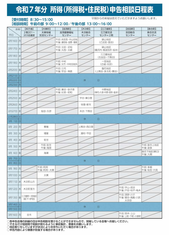 令和8年度(令和7年中)の市・県民税、所得税申告相談