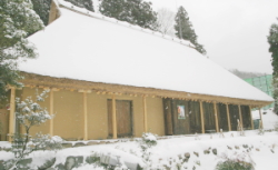 かつての「たたら師」が形成した集落跡地、菅谷たたら山内には、高殿と呼ばれる鉄の生産施設が残されています。正面にそびえるカツラの巨木は、樹齢200年とも言われ、芽吹きの時期には、枝が真っ赤に染まります。