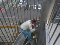 高所のため危険な作業ですが、“いざ避難を要した時のため”にと真剣に取り組んでいただきました。 |