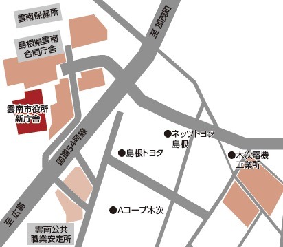 駐車場は、新庁舎駐車場(庁舎前・市道市役所線横・Aコープ向かい)、雲南合同庁舎駐車場(庁舎前・職員駐車場等)が使用できますが、混雑が予想されますので、乗り合わせのうえお越しただきますようお願いします。
